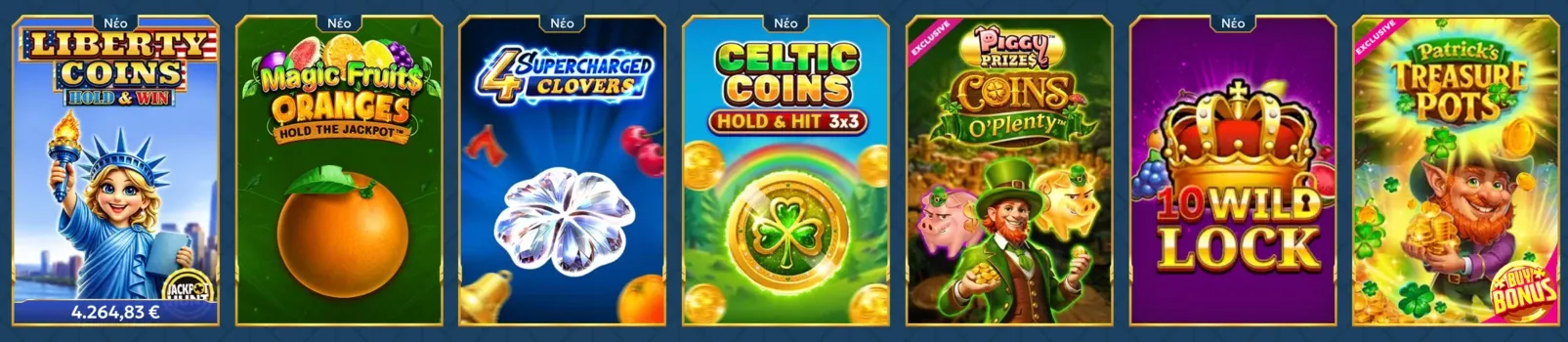 - Ποικιλία Παιχνιδιών: Φρουτάκια, επιτραπέζια παιχνίδια και ζωντανά παιχνίδια.